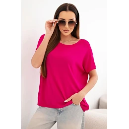 Dámská viskózová oversize halenka s krátkým rukávem a kulatým výstřihem fuchsiová
