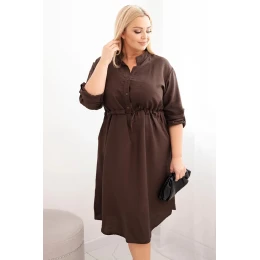 Dámská viskózová suknička Plus Size s knoflíky a vázáním v pase hnědá