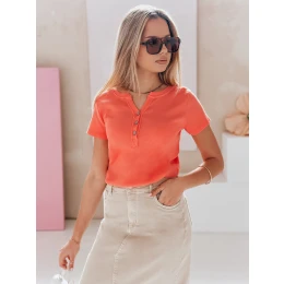 Tato dámská halenka s krátkými rukávy a ozdobným rozšířeným výstřihem je kombinací stylu a pohodlí. Je vyrobena z pružné žebrované tkaniny a poskytuje celodenní pohodlí. Knoflíky na přední straně vytvářejí módní akcent, kterým lze skvěle ozvláštnit klasický styl. Univerzální velikost je vhodná od XS do L. Model je ideální na jaro a léto a vypadá skvěle k džínům nebo sukním.