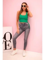 Dámská žebrovaná halenka se stahovací šňůrkou na bocích zelený