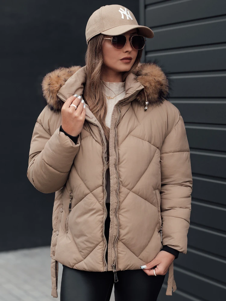 Dámská zimní bunda LESISI prošívaná s kapucí béžová FashionStreet TY4715