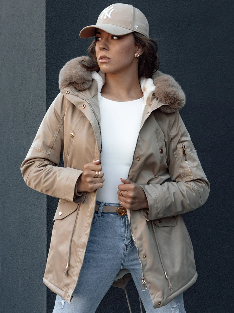 Dámská zimní bunda parka s kožešinou ERISS béžová FashionStreet TY4532