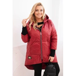 Dámská zimní bunda Plus Size prošívaná s kapucí bordová