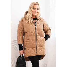Dámská zimní bunda Plus Size prošívaná s kapucí camelová