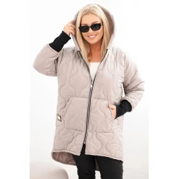 Dámská zimní bunda Plus Size prošívaná s kapucí tmavě béžová