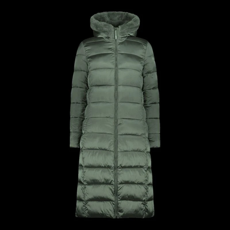 Dámská zimní bunda s kapucí CMP zateplený kabát dlouhý zelený (34K0046F/E621)
