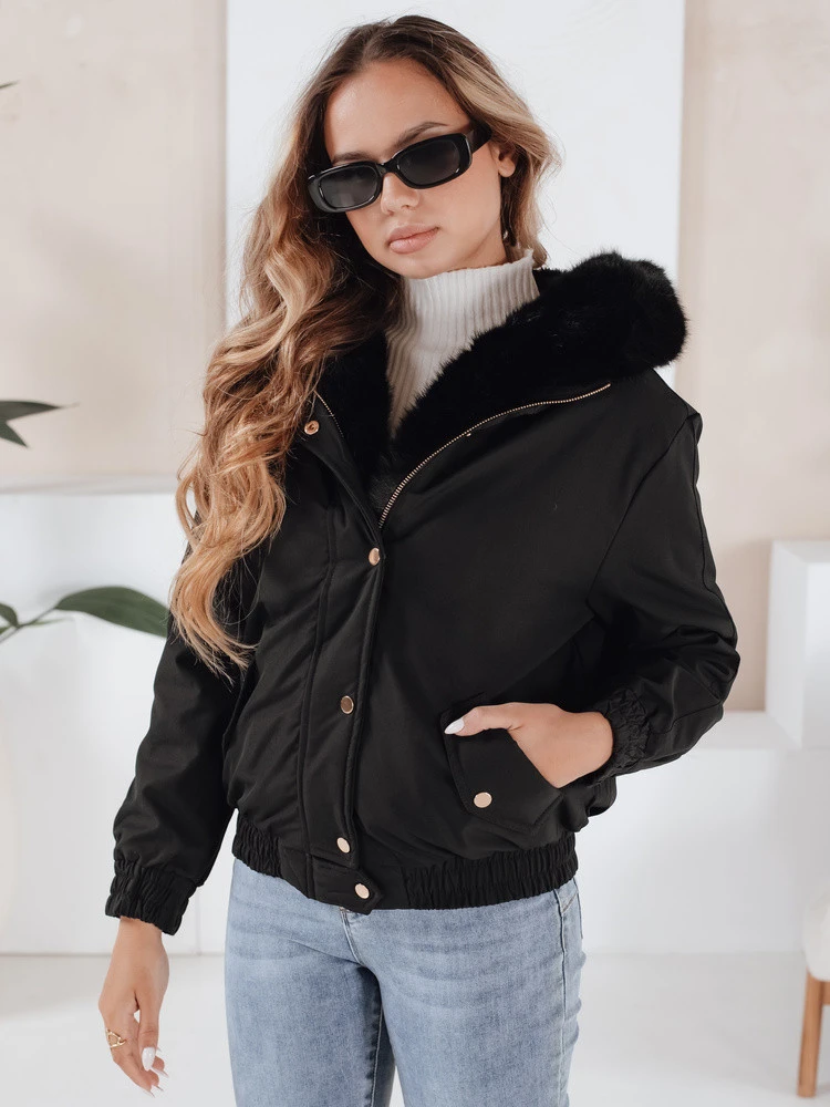 Dámská zimní bunda VESSADA krátká s kožešinou černá FashionStreet TY5059