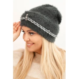 Dámská zimní čepice huňatá s perličkami a ozdobným vzorem grafitová