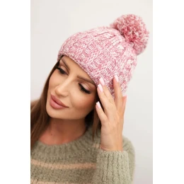 Dámská zimní čepice s bambulí z vlny K424 světle růžová