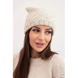 Dámská zimní čepice s ozdobným pletením a klasickým střihem K372 béžová