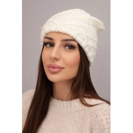 Dámská zimní čepice s ozdobným pletením a klasickým střihem K372 ecru