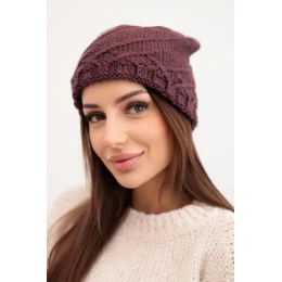 Dámská zimní čepice s ozdobným pletením a klasickým střihem K372 tmavě fialová