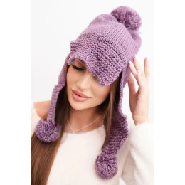 Dámská zimní čepice s vlnou, kšiltem a bambulemi K475 fialová