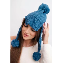 Dámská zimní čepice s vlnou, s kšiltem a bambulemi K475 jeansová