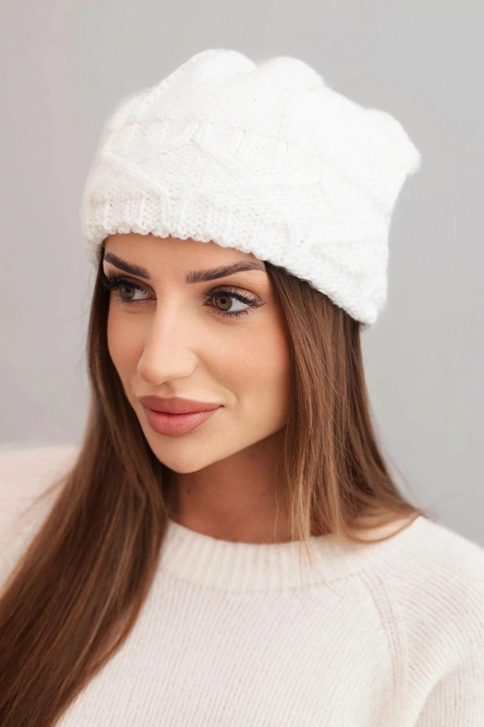Dámská zimní čepice s vlnou v hrubém copánkovém pletení K481 bílá