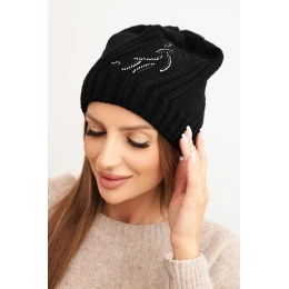 Dámská zimní čepice s vlnou volného střihu K442 černá