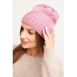 Dámská zimní čepice s vlnou volného střihu K442 růžová