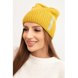 Dámská zimní čepice vlněná s cyrkoniemi K453 musztardová