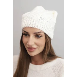 Dámská zimní čepice vlněná s ozdobnými krystalky K461 ecru