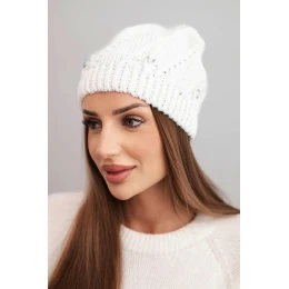 Dámská zimní čepice z vlny s ozdobnými krystaly K461 bílá