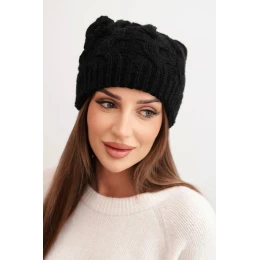 Dámská zimní čepice z vlny s hrubým copánkovým vzorem K458 černá
