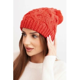 Dámská zimní čepice z vlny s hrubým copánkovým vzorem K458 červená