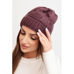 Dámská zimní čepice akrylová s ozdobným pletením K462 tmavě fialová