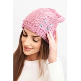 Dámská zimní čepice z vlny s ozdobnými aplikacemi K468 tmavě růžová