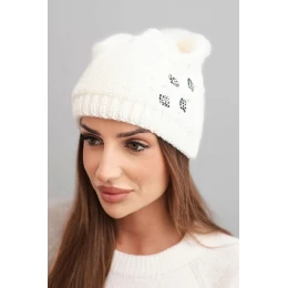 Dámská zimní čepice vlněná s ozdobnými aplikacemi K468 ecru
