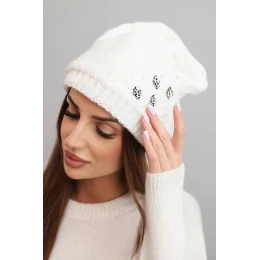 Dámská zimní čepice z vlny s ozdobnými aplikacemi K468 bílá