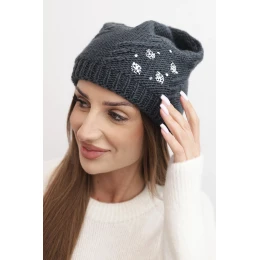 Dámská zimní čepice z vlny s ozdobnými aplikacemi K468 grafitová
