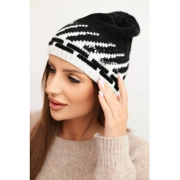 Dámská zimní čepice z vlny s geometrickým vzorem a kamínky K469 černá
