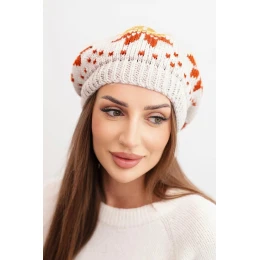 Teplá a útulná dámská čepice stvořená s ohledem na zimní měsíce. Její klasický střih byl obohacen efektním vzorem sněhových vloček, který evokuje vánoční a zimní atmosféru a dodává celku kouzlo. Na vrcholu čepice se nachází měkký pompon vyrobený z příze, který skvěle doplňuje celkový vzhled a dodává stylizaci dívčí charakter.