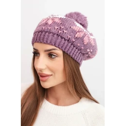Dámská zimní čepice z vlny s motivem sněhových vloček a bambulí K457 světle fialová