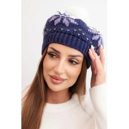 Teplá a útulná dámská čepice stvořená s ohledem na zimní měsíce. Její klasický střih byl obohacen efektním vzorem sněhových vloček, který evokuje vánoční a zimní atmosféru a dodává celku kouzlo. Na vrcholu čepice se nachází měkký pompon vyrobený z příze, který skvěle doplňuje celkový vzhled a dodává stylizaci dívčí charakter.
