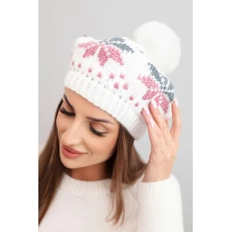 Dámská zimní čepice vlněná s motivem sněhových vloček a pomponem K457 bílá