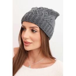 Dámská zimní čepice vlněná s ozdobným ražením K474 grafitová