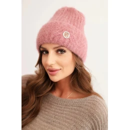 Čepice je ozdobena elegantním zlatým knoflíkem vpředu, který jí dodává jedinečný charakter. Jemná pastelová barva se skvěle hodí do ženských zimních stylizací.