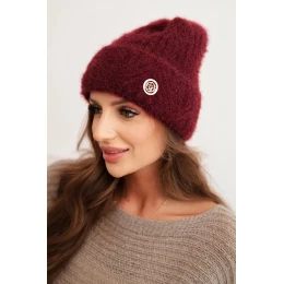 Dámská zimní čepice z nadýchané příze a s elegantním knoflíkem bordová