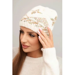 Dámská zimní čepice z vlny a s barevným vzorem K478 ecru