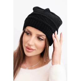 Dámská zimní čepice z vlny a s pleteným vzorem K428 černá