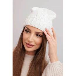 Dámská zimní čepice s vlnou zdobená flitry a pletením K473 bílá