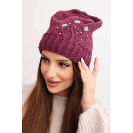 Dámská zimní čepice s vlnou zdobená flitry a pletením K473 tmavě fialová