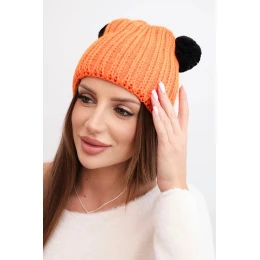 Dámská zimní čepice z vlny s bambulí K433 oranžová