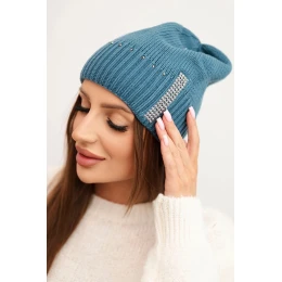 Dámská zimní čepice z vlny s cyrkony K453 jeansová