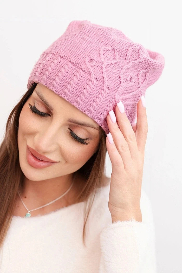 Dámská zimní čepice z vlny s dekorativním ražením K474 tmavě růžová