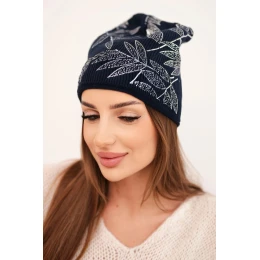 Stylová dámská čepice s jemným leskem, vyrobená z vysoce kvalitní pleteniny s přídavkem mohairu a vlny. Zlatý, rostlinný vzor přitahuje pozornost a dodává eleganci, díky čemuž je čepice ideální jak na každodenní nošení, tak jako módní akcent k zimním stylizacím.