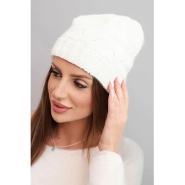 Dámská zimní čepice z vlny s krajkovým vzorem K427 ecru