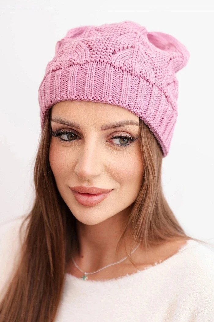 Dámská zimní čepice z vlny s krajkovým vzorem K427 tmavě růžová