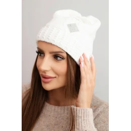 Dámská zimní čepice vlněná s krystaly a vzorem K455 ecru
